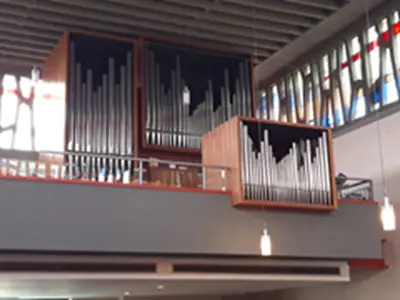 Wenngleich unsere Orgel äußerlich im aus Lärchenholz gefertigten Prospekt recht schnörkellos und modern wirkt, so ist die von Gebr. Oberlinger hier eingesetzte mechanische Technologie doch der barocken Tradition des 18. Jahrhunderts verbunden. Auch die oben bereits erwähnten Klangfarben mit vielen strahlenden obertonreichen Registern entsprechen ganz dieser barocken Tradition.